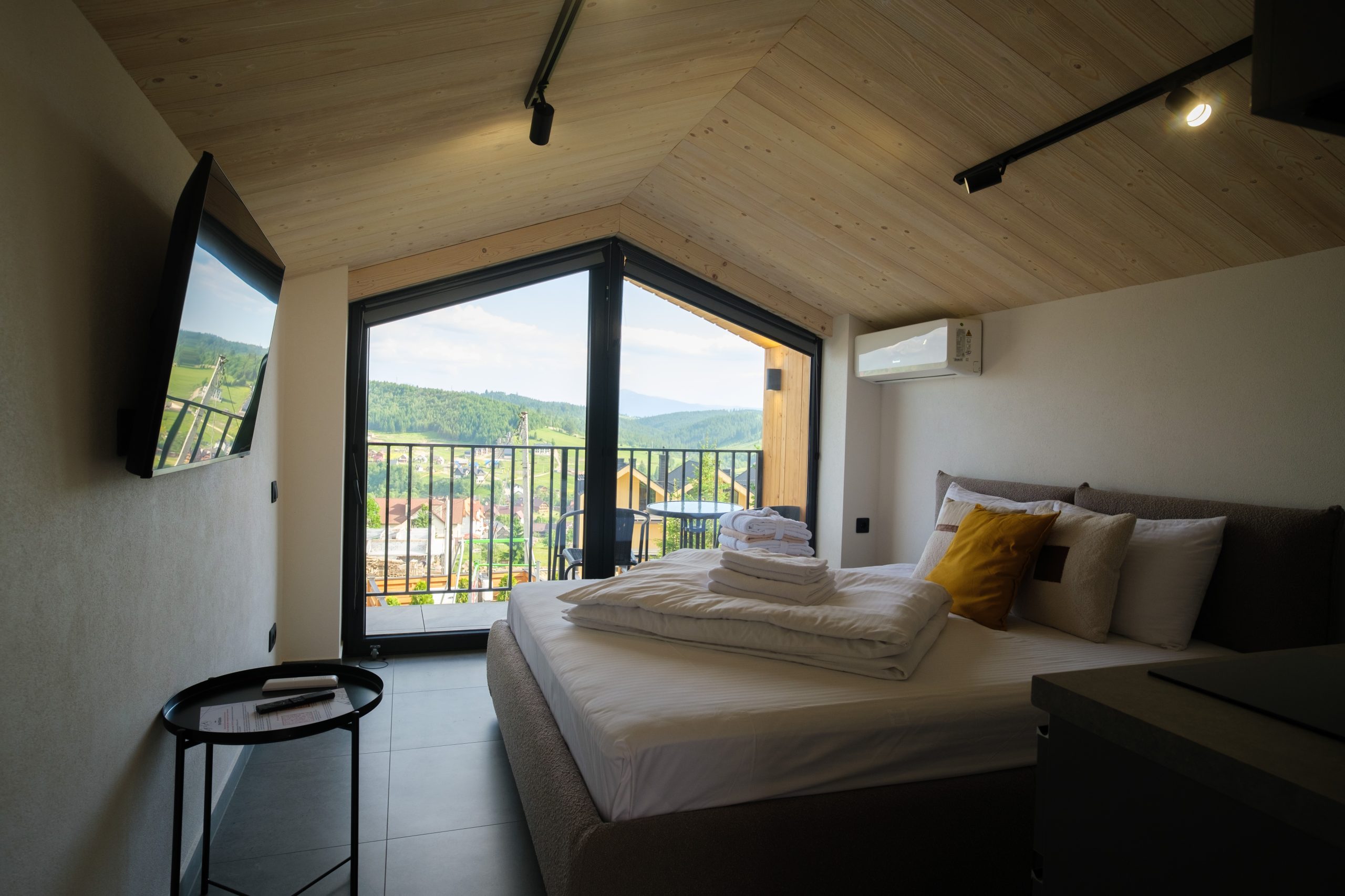 Наші апартаменти створені для тих, хто цінує простір, комфорт і домашній затишок. Панорамні вікна наповнюють кімнати світлом і відкривають краєвиди, які захоплюють подих. Власна кухня, стильний інтер’єр і сучасні зручності дозволяють вам відчути себе, як удома, а професійний сервіс додає нотку розкоші до вашого відпочинку.