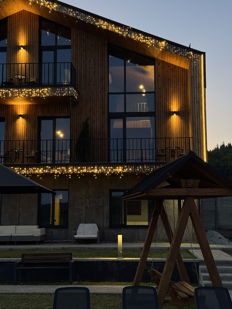 Справжнє щастя – це прості моменти, проведені разом: неквапливі сніданки з панорамним видом на Карпати, спільне приготування улюблених страв із турботою про близьких, вечірні посиденьки за чашкою чаю. А для активного дозвілля є піші прогулянки та сімейні екскурсії.